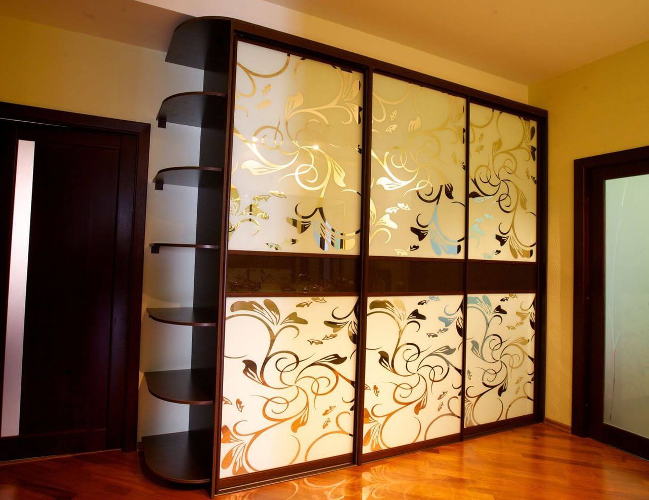 Выигрышный вариант абстракции — изображения с плавными линиями и округлыми формами. Узор должен быть интересным, но в то же время ненавязчивым и спокойным, чтобы не нарушать гармонию интерьера. Цветочные принты на фасадах шкафов пользуются неизменной популярностью. Мебель с таким декором универсальна, подойдет практически для любого интерьера. Это могут быть матовые веточки с цветами по периметру зеркального фасада либо объемные изображения растений на все полотно.