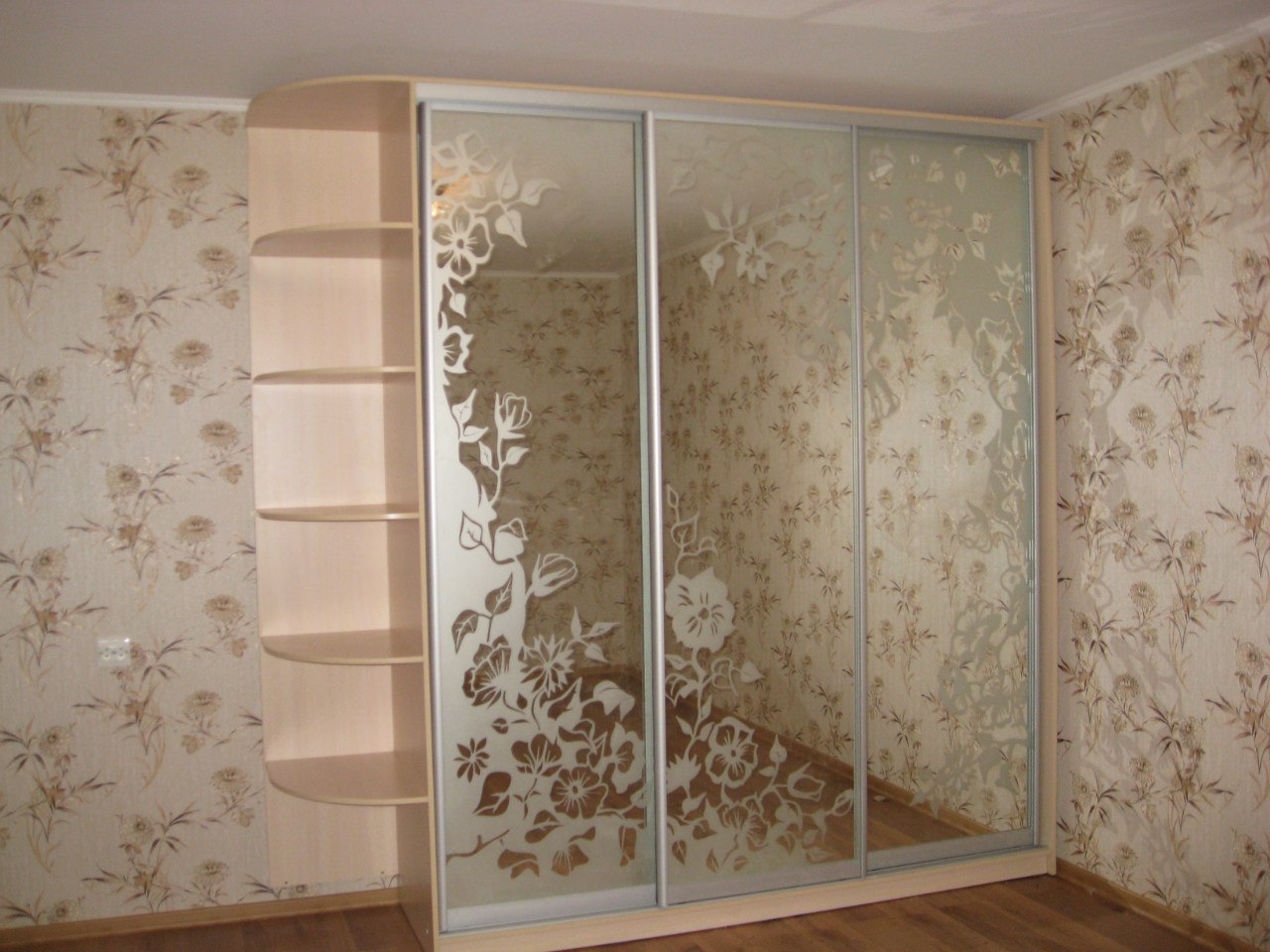 Дизайн шкафов-купе с пескоструйным рисунком на зеркале