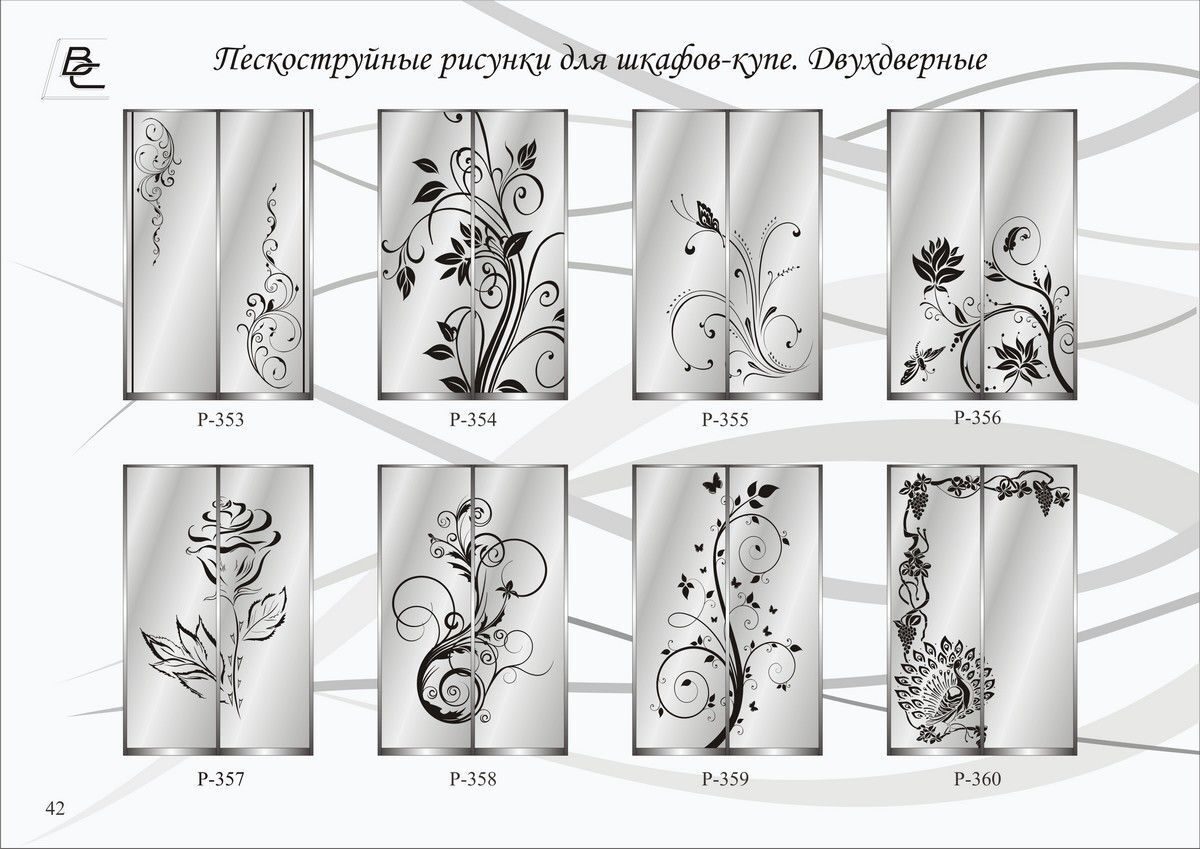 Мы предоставляем самую большую базу пескоструйных рисунков для дизайна и оформления стекла и зеркала. Ниже представлены разделы пескоструйных рисунков с векторными шаблонами в которых Вы сможете подобрать примерить на шкаф и купить пескоструйный рисунок и нанести любые поверхностикак: зеркала на двери купе, перегородки, стены, потолки зеркальные , зеркала, плитку, душевые кабинки и другие различные поверхности. Векторные рисунки можно изменять редактировать под любые размеры. Фасад Шкаф купе — красивое полотно зеркальное или стекло, идеально вписывающееся в интерьере любой из комнат.