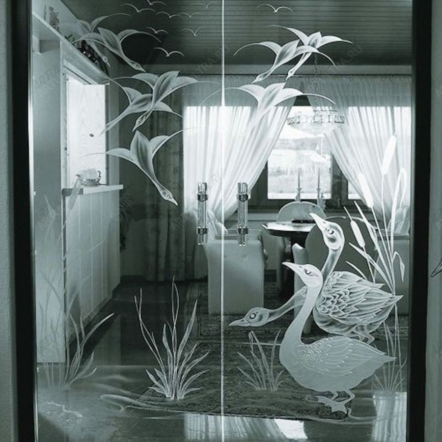 Пескоструйный рисунок позволяет добиться более интересного внешнего вида, не используя при этом объемные декоративные элементы, что также служит на выполнение дополнительных функций при экономии пространства.