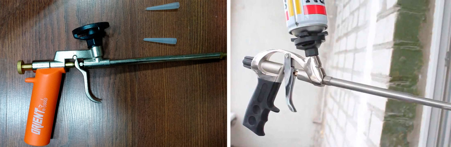 Пистолет подает пену на участок порционно, это более удобно, чем использование простого баллона. К тому же, баллон не сможет помочь вам совершить тонкую работу (например, заделывание мелкой дырки в стене). Тонкое «дуло» пистолета справится с любой мелкой щелью.
