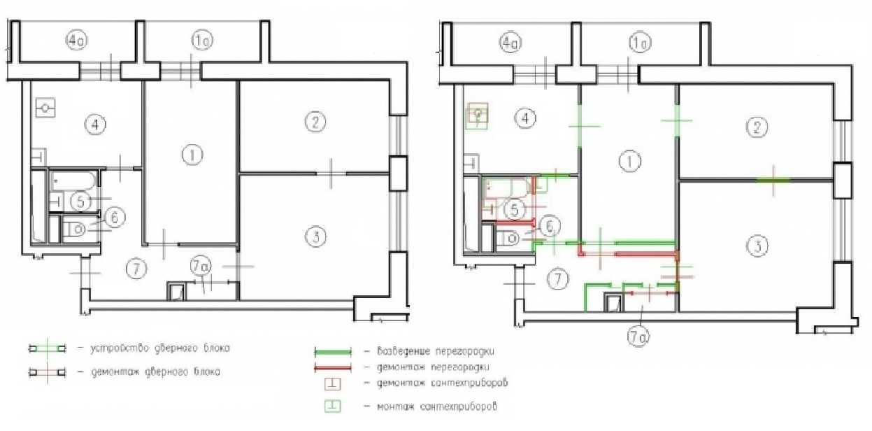 - обустройство дверей в туалет и ванну из комнаты либо кухни;