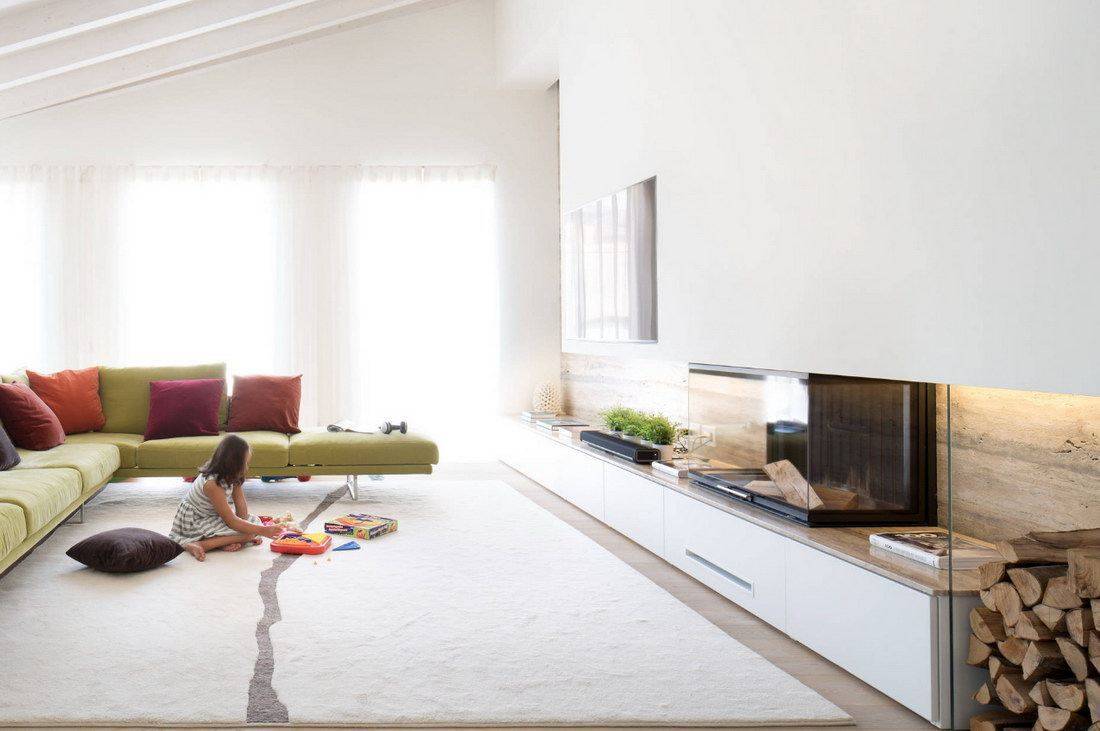 Особенно актуальным в современном мире стал стиль лофт. Кирпичную отделку все чаще можно увидеть даже в небольшой квартире. Сочетание такого интерьера с камином выглядит свежо и интересно. Причем он вовсе не обязательно должен быть классическим. Ведь в данном случае уместной будет комбинация старины с современной техникой. Альтернативным решением может быть фальш-камин.