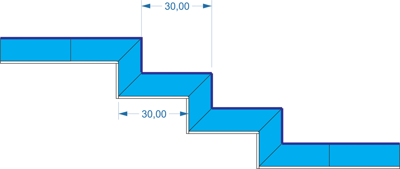 Мы рекомендуем резать углы непосредственно перед укладкой, замерив каждое расстояние для каждой ступени.