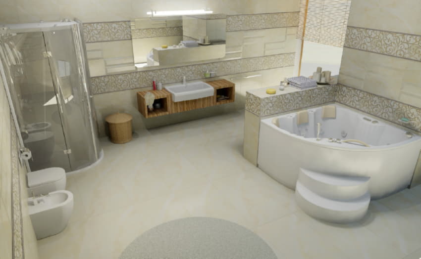 Итак, главное отличие – обрезной край. Обычный кафель имеет закругления или фацет. Поэтому его укладывают так, чтобы между соседними элементами оставался зазор, ширина которого устанавливается в зависимости от габаритов кафеля. У ректификата же края ровные. Значит, что острой необходимости в оставлении швов нет. Такую плитку монтируют встык, без зазоров. В современном дизайне это актуально как никогда.