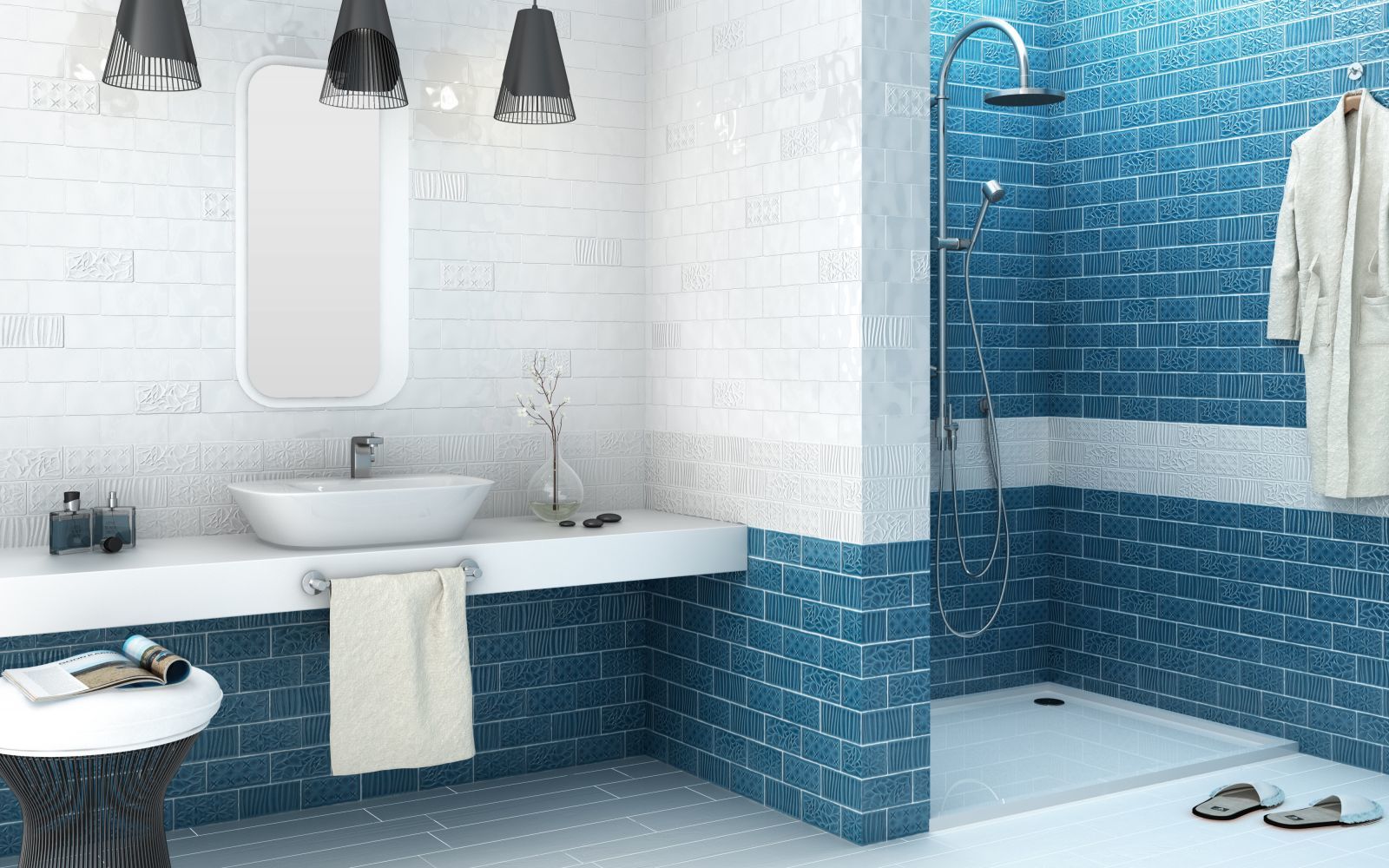 Комбинирование гладких и фактурных разновидностей позволяет добиться необычного эффекта при составлении интерьерного фона ванной. Производители выпускают широкий перечень подобной продукции для отделки ванных комнат. Коллекции постоянно обновляются, для придания фону завершенности можно подобрать к белой плитке бордюр, мозаичное панно, создать разноразмерный вариант оформления стен. Интересна разновидность «кабанчик» с фаской, которая может иметь и прямые торцы.