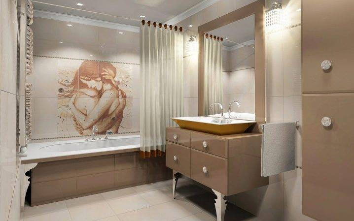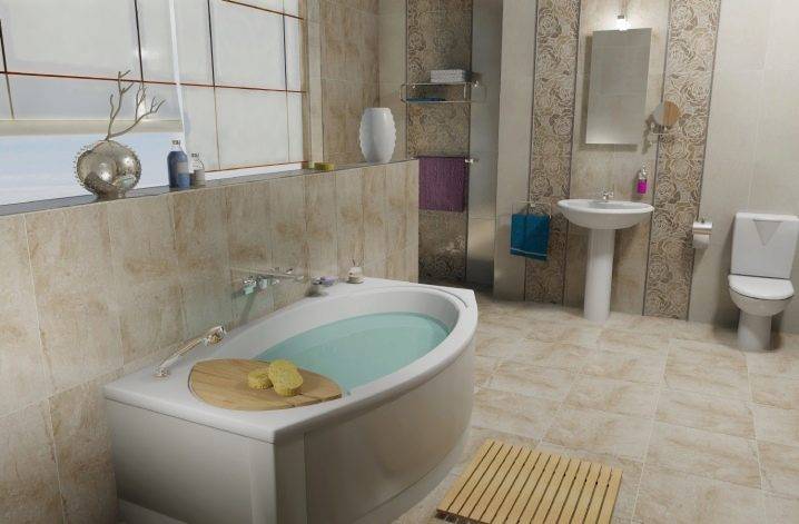 Так как ванная комната зачастую представляет собой небольшую комнату без окон, то лучше отдать предпочтение светлым тонам и незамысловатым дизайнам. Можно подобрать плитку, выдержанную в одном цвете, а можно выбрать отделку в контрастных оттенках. Первый вариант считается классическим для ванной комнаты и санузлов и пользуется большим спросом у потребителей.