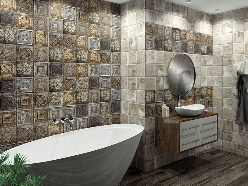 - Для отделки ванных комнат и уборных идеально подойдет плитка с оригинальными дизайнами из серий Agata, Bombato, Etrusco и Tissu.