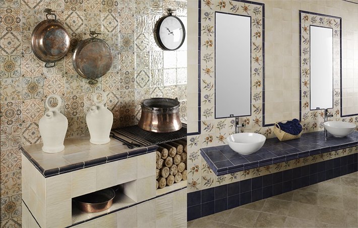 Основой стиль – рустика, которую можно узнать по наличию на плитке отесанных и неотесанных поверхностей. Чувствуется особенный колорит в каждом изделии. Уникальный стиль плитки уходит корнями в историю Средиземноморья.