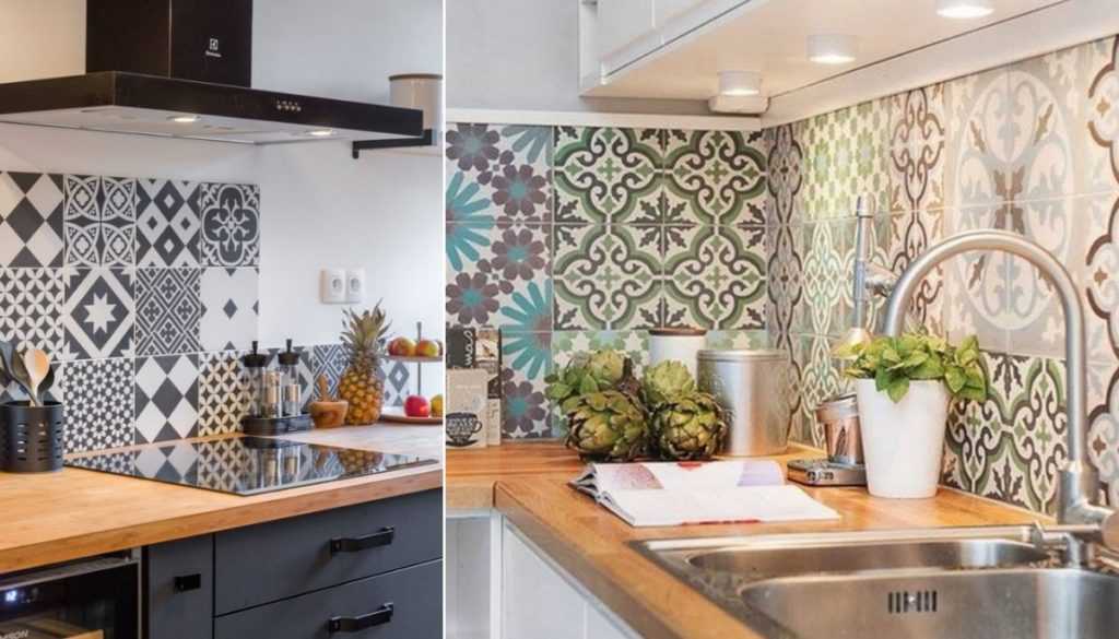 если отдается предпочтение узору, то необходимо постараться не «смешивать» их с кухонным фасадом.