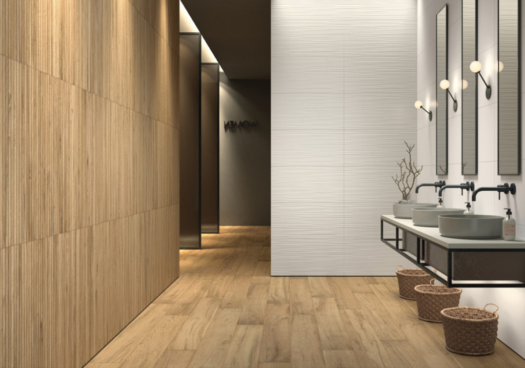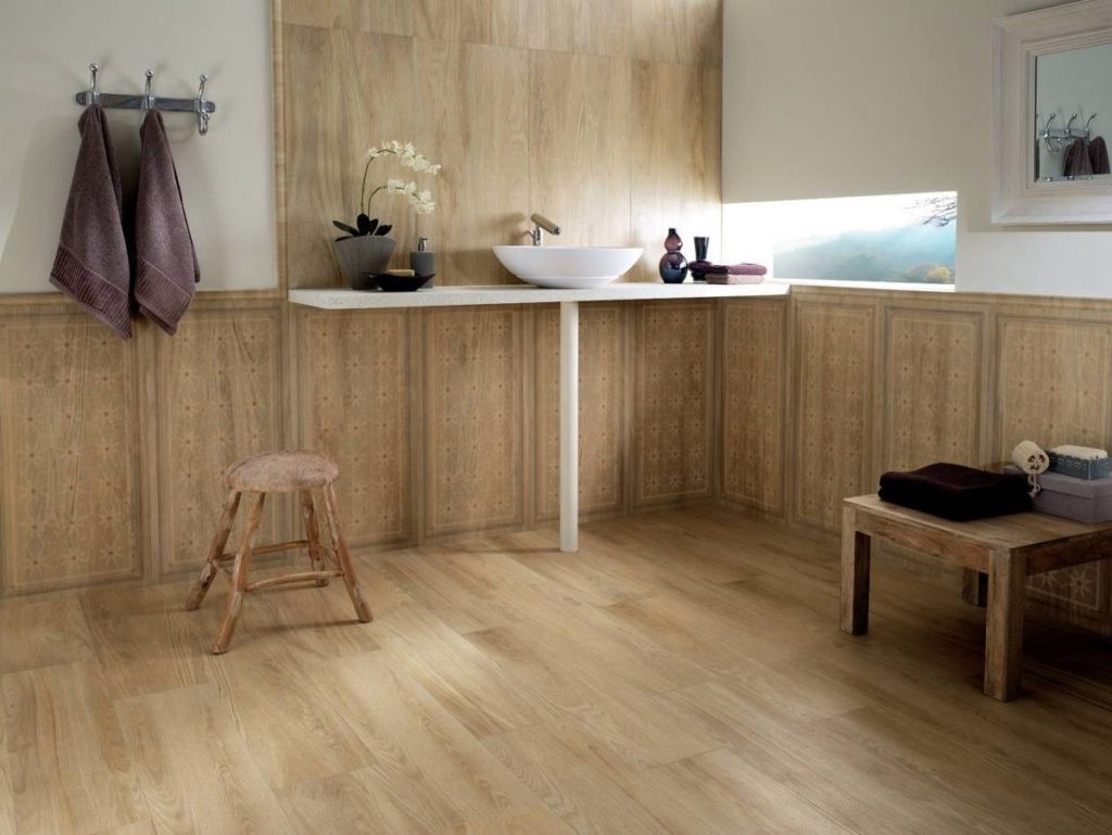 Этот тип керамики может успешно использоваться там, где помещение не подходит для натуральной древесины. Это хорошее решение для ванных комнат и кухонь. Помните, что эти два уникальных интерьера обычно имеют повышенную влажность. Натуральное дерево во влажном месте, как правило, деформируется и может быть атаковано грибками и плесенью. Между тем, керамика не поглощает влагу и ее легко содержать в чистоте, а ее теплые древесные тона делают поверхности более приятными и привлекательными.