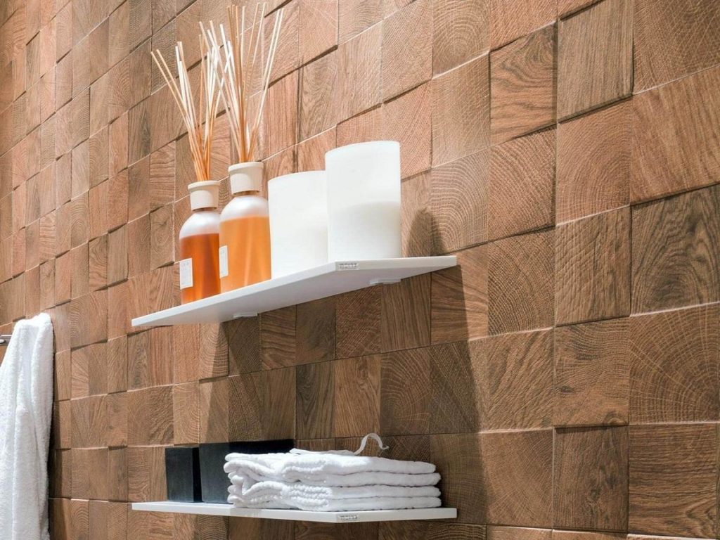 Имитация дерева также выглядит как квадраты – тогда плитки обычно изображают срезы деревьев или деревянные композиции. Некоторые из них имеют пространственную форму и предназначены для установки на стены. Другие, смоделированные как сложный паркет, расположенные на полу, привносят в комнату атмосферу дворца.