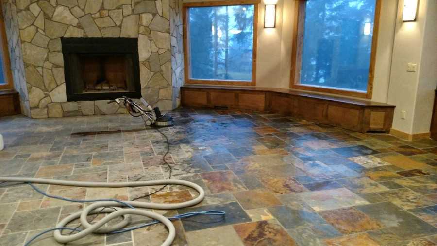 - После укладки плитки проводится финишная обработка покрытия. С поверхности покрытия удаляются остатки клея и затирки.