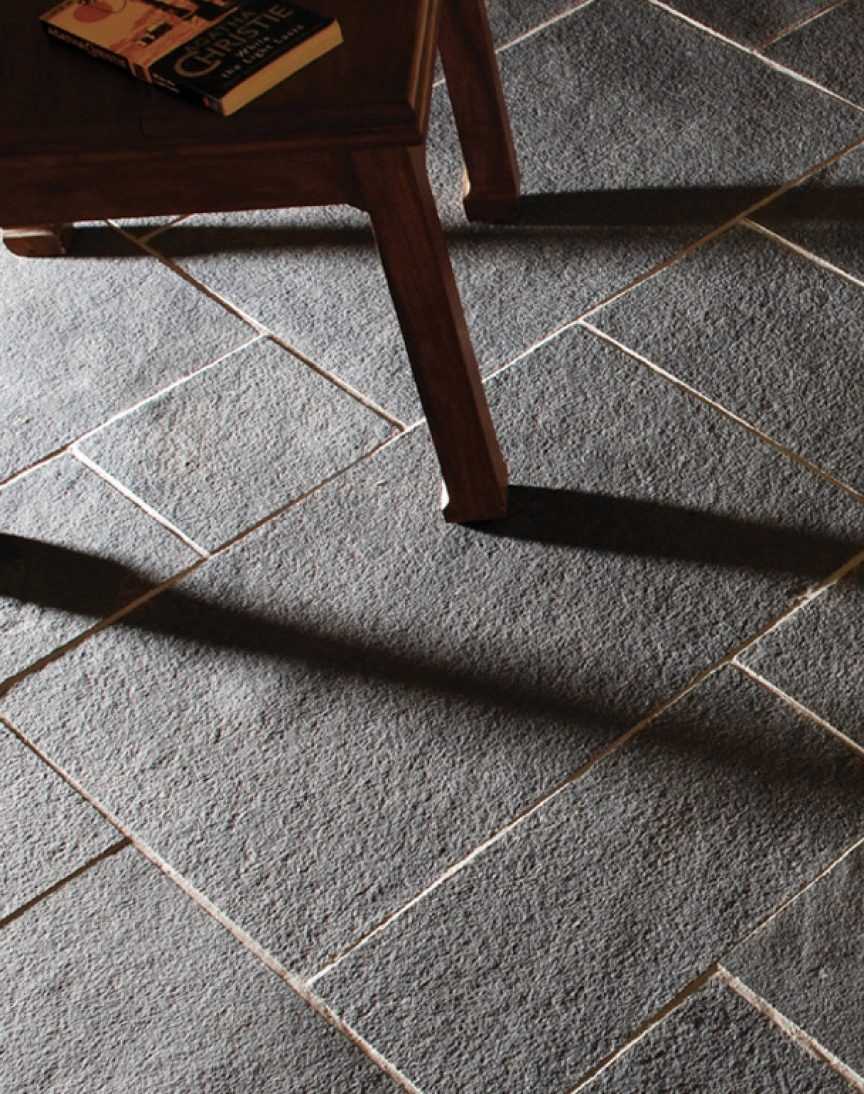 Оригинально выглядит отделка помещения плиткой, имитирующей старый, пролежавший несколько десятилетий и поменявший за это время свою расцветку камень. Подобные изделия покрывает сеть специально образованных трещин и сколов.