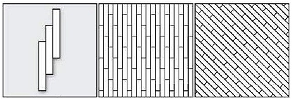 Существует огромное количество способов укладки. Один из самых распространенных — палубный («вразбежку»). Смысл его заключается в том, что панели укладываются со смещением ряда на 1/5 или 1/6 длины самой плитки. Сложностей при этом не возникает, а рисунок можно выкладывать даже по диагонали.