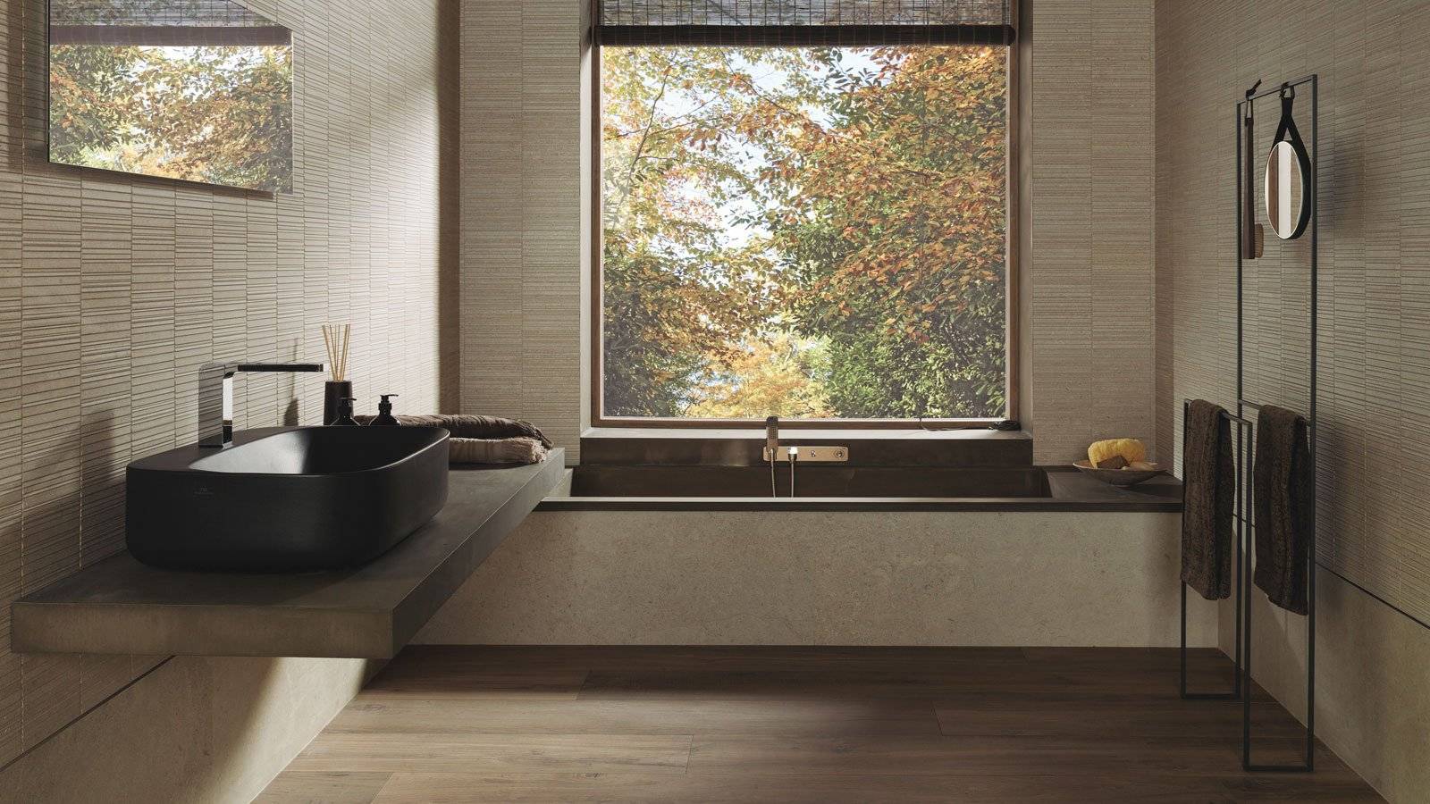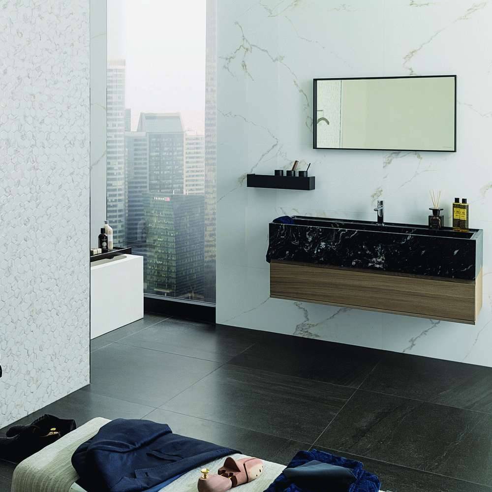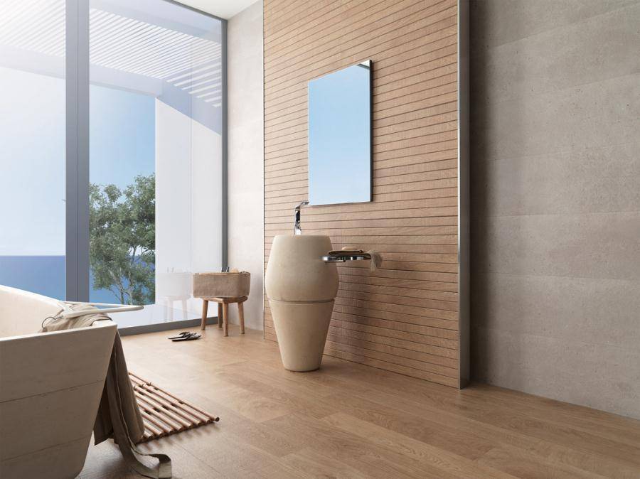 Эта склонность к нейтральности и чистым материалам также распространяется на конструкционные системы от Butech, которые не только обеспечивают правильную установку изделий Porcelanosa Grupo, но и способствуют улучшению природной среды. Эту же идею бренд перенес на R-Eco, добавку для цементных схватывающих материалов, уменьшающую загрязнение пластиком, а также на свои новые декоративные профили.