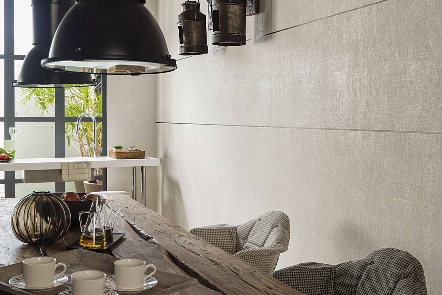 Ультратонкая керамическая плитка выпускается в необычном формате 3х1 м, что дает возможность для выравнивания стен и создания стильного дизайна в монолите.