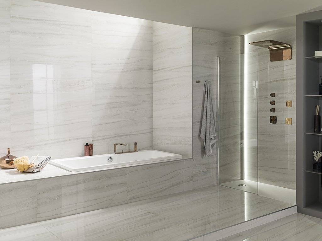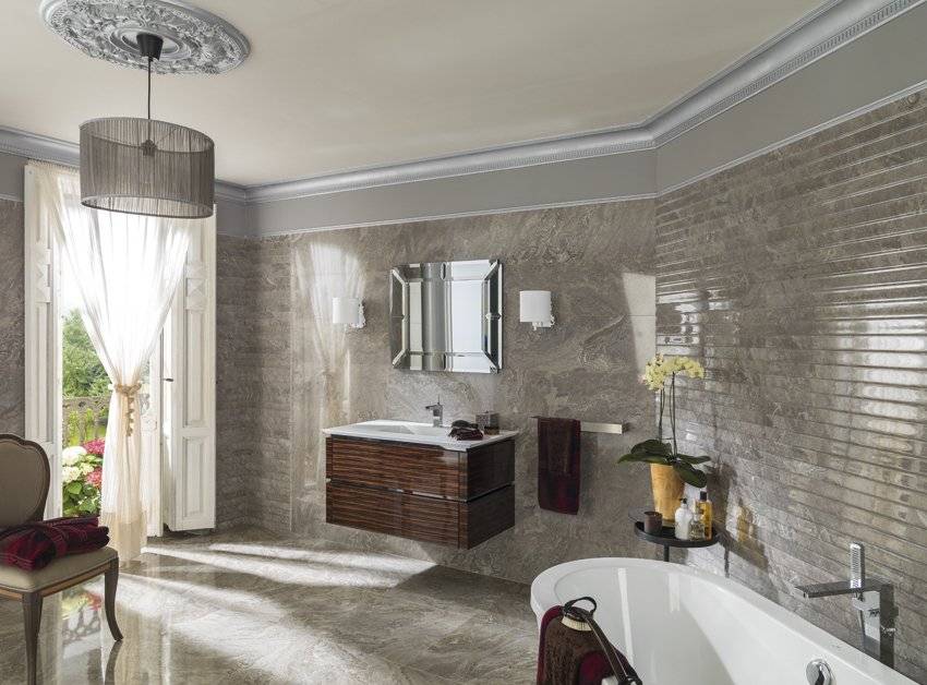 - Классический стиль всегда остаётся в моде, и поэтому изделия по мрамор украсят любой интерьер. Универсальной в этом отношении является керамогранитная плитка под натуральный камень из коллекции Porcelanosa Venezia. Настенное покрытие имеет формат 45Х120 см. Поражает разнообразие цветов – серый, табачный, шоколадный.
