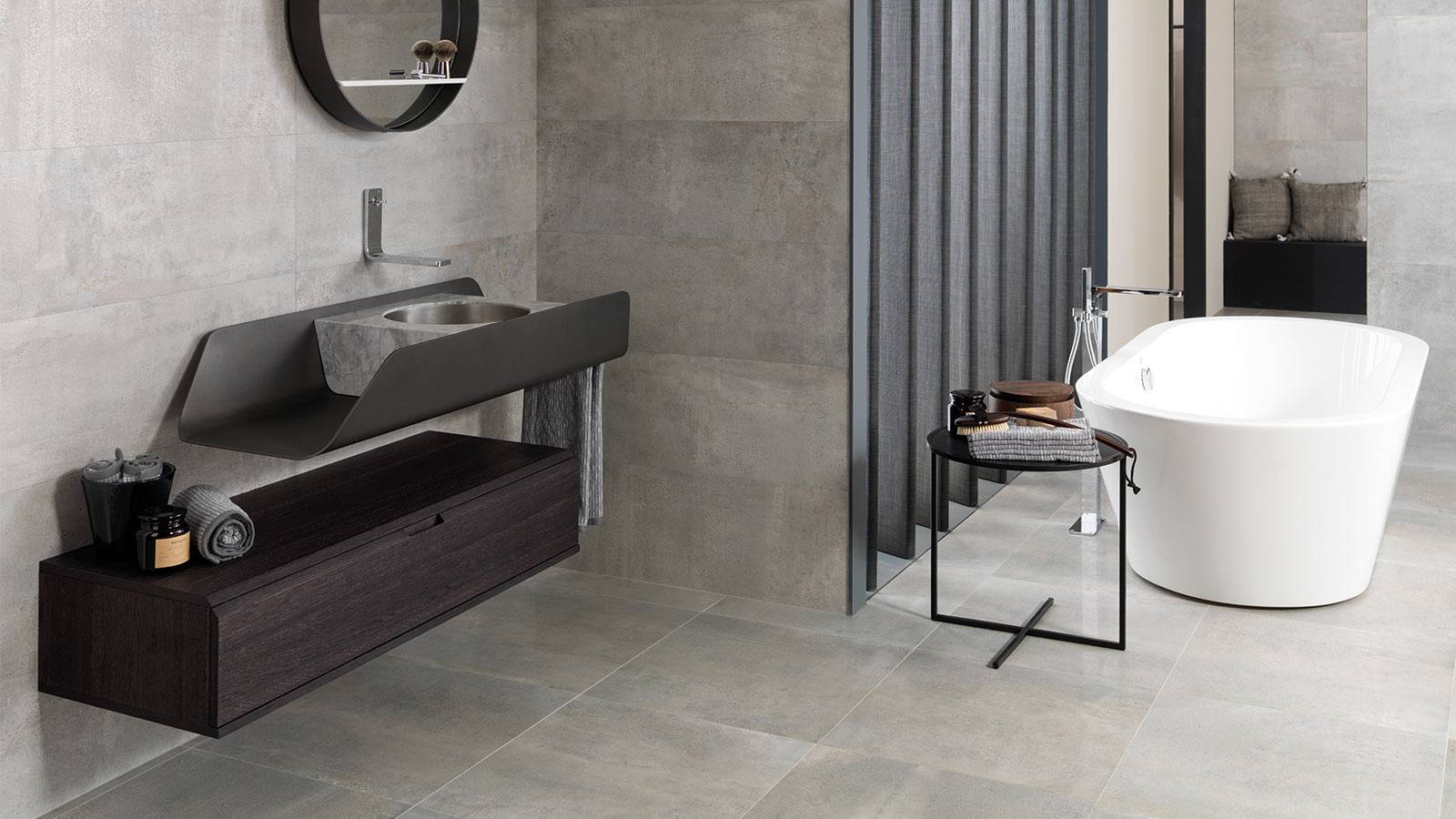 Urbatek – напольная плитка широких форматов, обладающая повышенной устойчивостью к любым воздействиям, в том числе химическим. Подойдет для укладки полов в коммерческих помещениях: складских зонах, спа-комплексах. Цветовая палитра неброская: имеет серый, черный и молочный оттенок.
