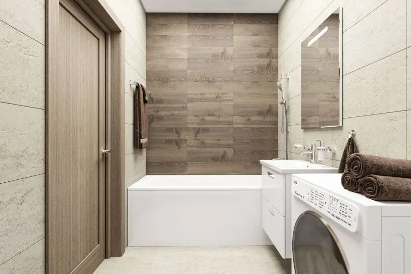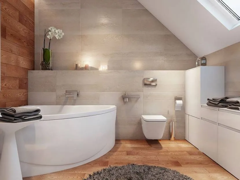 Чтобы пространство не выглядело безликим, важно соблюдать баланс холодных и теплых оттенков. Если для стен выбрана светло-серая или белая керамика, то на пол укладывают плитку в бежевых оттенках (и наоборот).