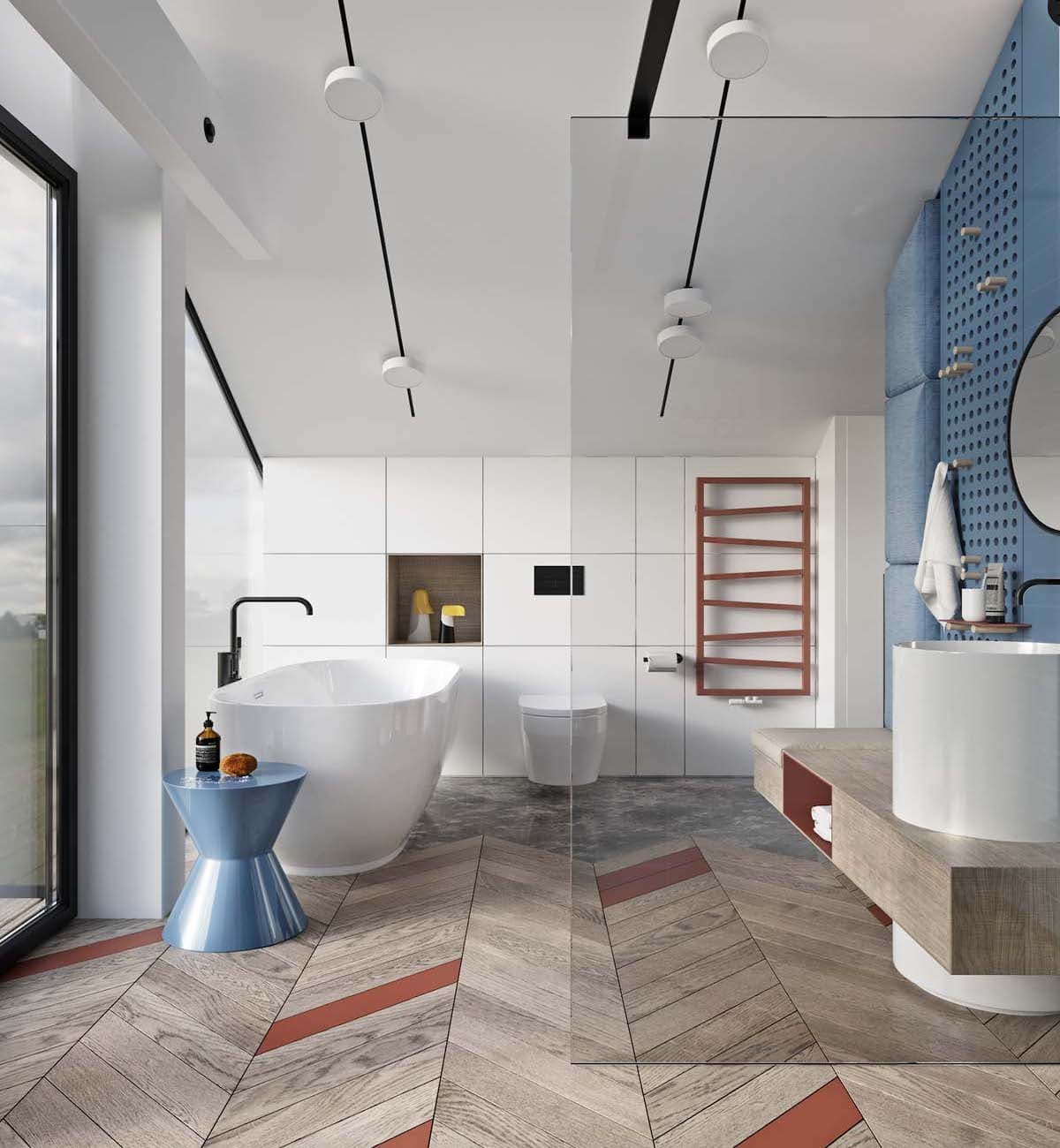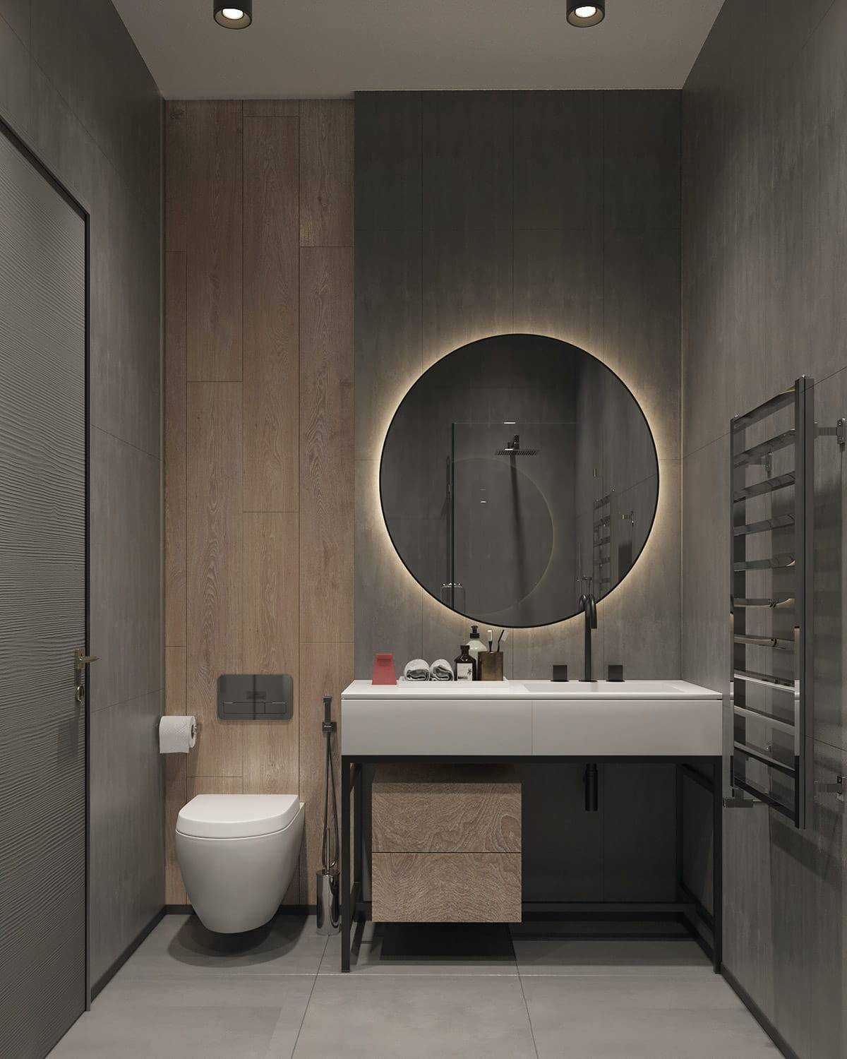 Как мы уже писали ранее, для отделки ванной в стиле лофт применяются бетон, кирпич, плитка, дерево, а также материалы на их основе.