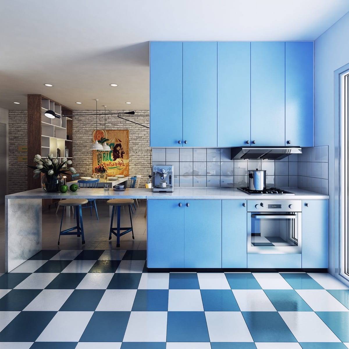 Более оригинальная альтернатива черно-серым интерьерам – оттенки синего. В лофте обычно используются темные и приглушенные тона, вроде потертой джинсы, грязно-бирюзового, сапфирового, кобальта, оттенков грозового неба. А вот для акцентов подойдет насыщенный голубой, ультрамариновый или индиго.