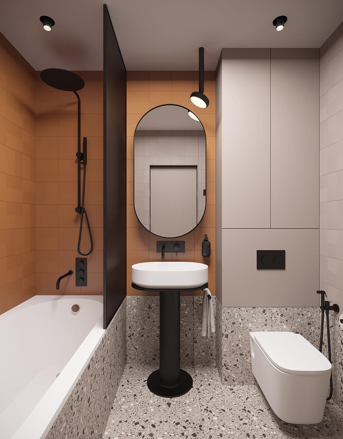 - В целях экономии можно поставить вместо ванной душевую кабинку. Однако подобрать ее следует правильно — иначе испортите все впечатление от комнаты (вопрос подбора кабинки мы более подробно рассмотрим ниже).