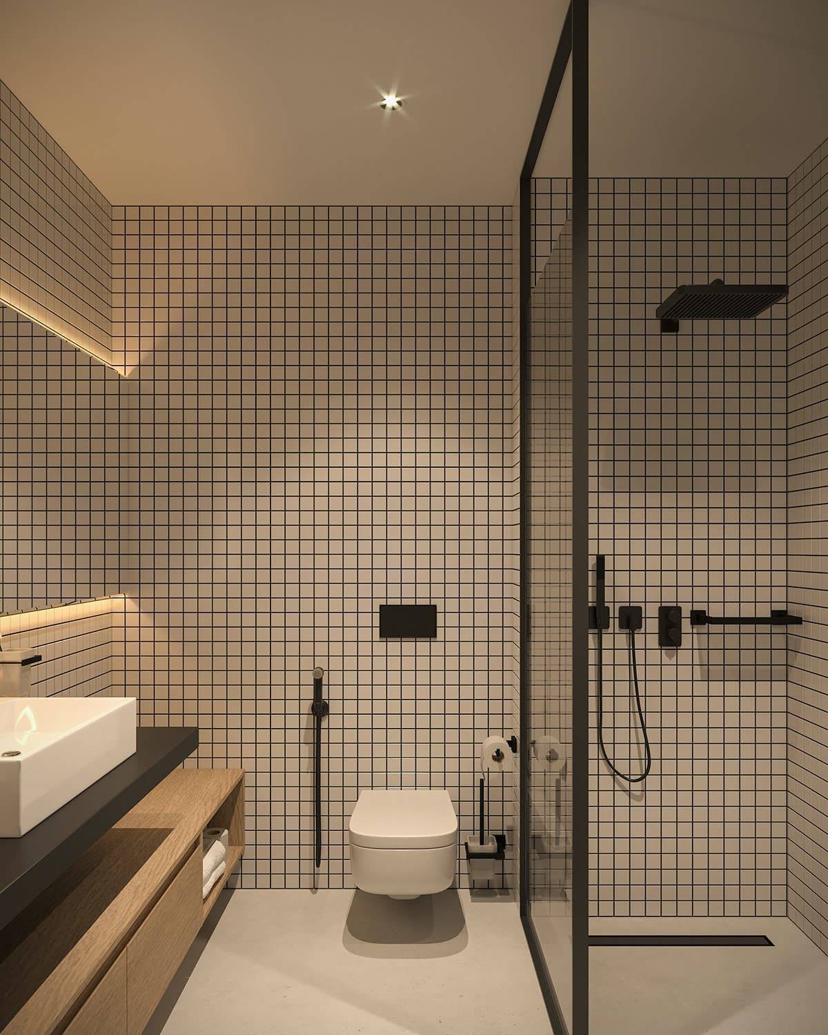 Сегодня модны сдержанные и нейтральные цветовые гаммы в сероватых и (особенно) чёрных матовых тонах. Для придания помещению более живого вида, вполне можно выбрать, например, текстурированную кафельную плитку.