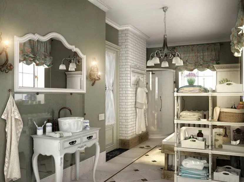 Классика стиля прованс предусматривает наличие естественного освещения ванной комнаты