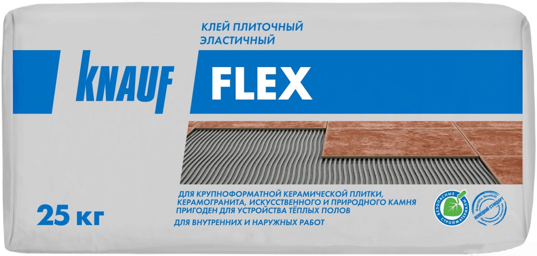 Кнауф Флизенклебер представляет универсальный состав для внутренних работ по приклеиванию плитки с водопоглощением до 3%. Допускается использовать для наружной облицовки, при этом показатель водопоглощения у кафеля должен быть выше 5%.
