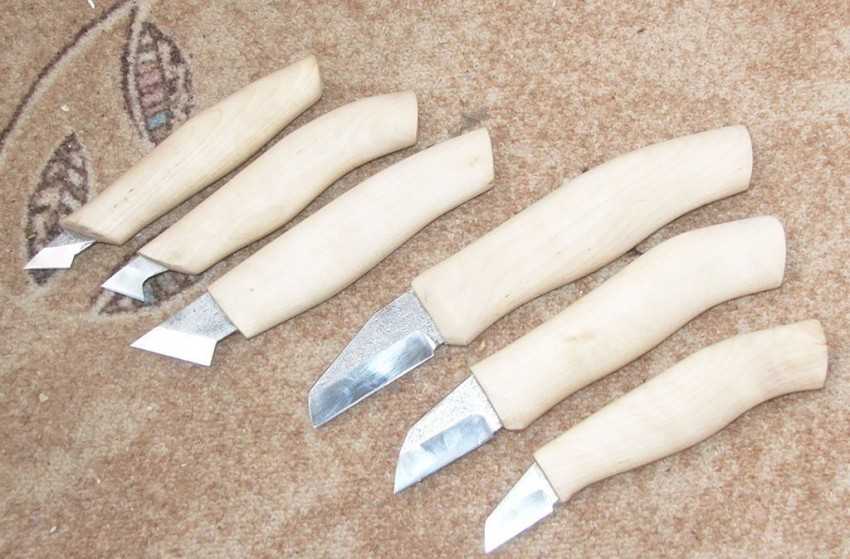Немного поднабравшись опыта можно приобрести небольшой набор ножей разной ширины и формы, что позволит вам разнообразить наносимые рисунки. До профессионала, конечно, еще очень далеко, но чтобы набить руку и поработать с разными сортами дерева, почувствовать их структуру и разницу между ними — то что нужно.