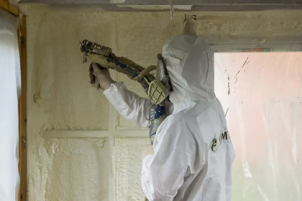 - 30-40 кг/м3 — материалы с «пограничной» ячеистой структурой. Используют для напыления внутренних полостей каркасных стен и конструкций (кровли, полов на лагах, чердачных перекрытий).