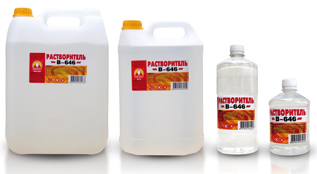 - Растворитель 646. Это очень эффективный и полезный химический продукт. Помогает разбавлять нитроэмали, нитролаки и эпоксидные компаунды, другие лакокрасочные материалы.