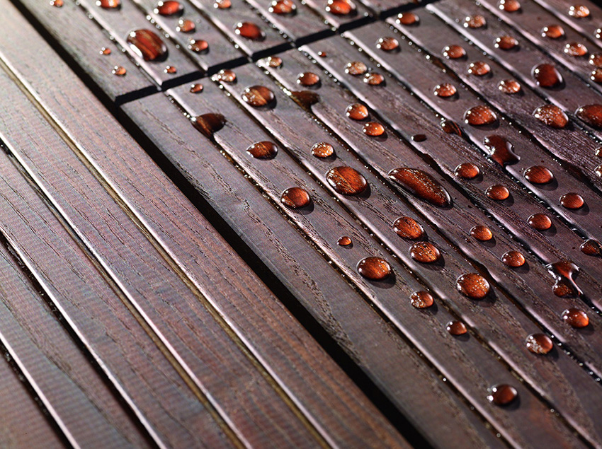 Позже появлялась термообработанная древесина. Ее выдерживают при температуре 140-160°C, в результате чего повышается ее плотность, она меньше (в разы меньше) впитывает воду. При грамотной обработке не поражается грибками. Но стоит такая доска не намного меньше, чем «экзотика». И все-таки это древесина, так что поддержание внешнего вида ежегодное.