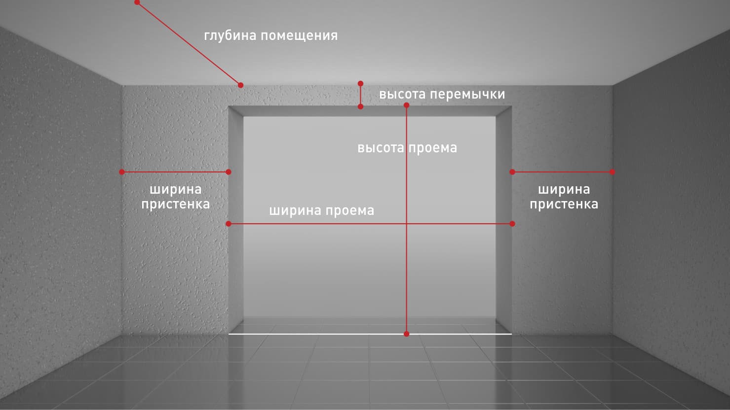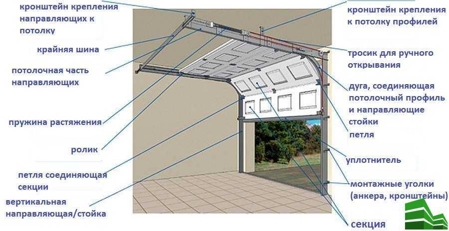 Основными габаритами гаража, которые необходимо учесть для установки секционных ворот, являются: