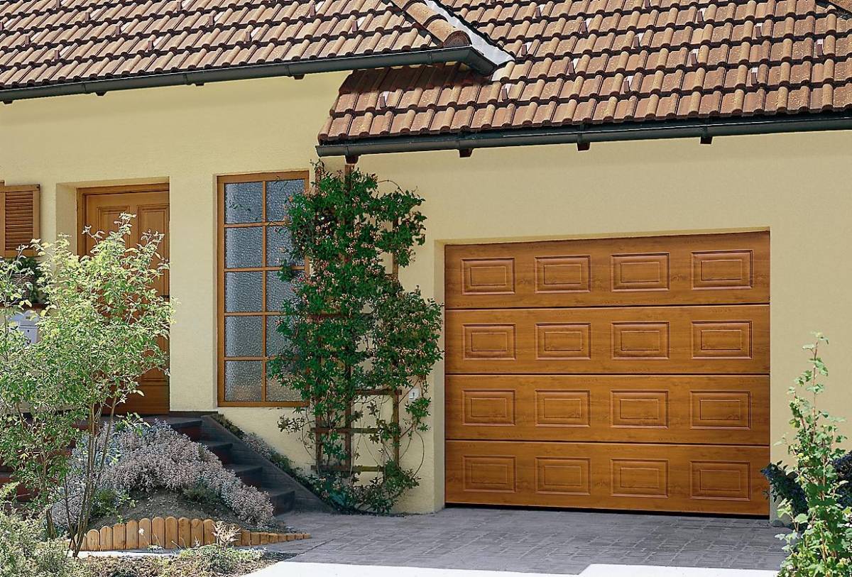 Надежное полотно поднимается на потолок гаража, поэтому машина подъезжает непосредственно к воротам. Конструкцию утепляют внутри, декорируют снаружи. Для открывания не нужно выходить из авто, ворота хорошо подходят для двойных гаражей.