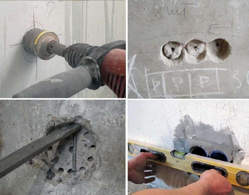 В ходе работы важно не повредить металлический каркас. Опытные специалисты рекомендуют использовать коронку для штробления, диаметр которой не превышает 100 см