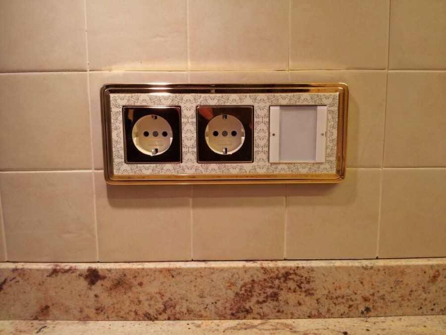 Розеточные блоки часто устанавливают на кухнях, располагая их за рабочим столом на высоте в 10 см, внутри кухонных тумб и за стенками соседних тумбочек на уровне 30-60 см от чистового пола. Встроенные розетки удобно использовать при подключении группы не мощных бытовых приборов: вытяжки, мультиварки, холодильника…