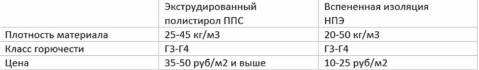 Таблица сравнения подложки из пенополистирола и вспененной из несшитых пен (НПЭ) 2-3 мм: