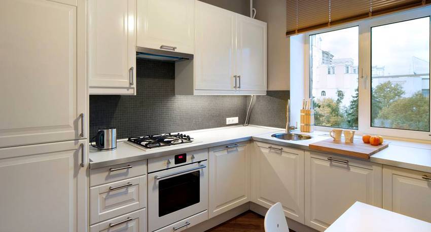 Если же столешница выше подоконника, лучше всего попросту заложить часть проема окна кирпичами и заказать меньшее окно. Однако такое решение подойдет только для частных домов. Что касается квартиры, такое действие является нарушением закона, поскольку влечет за собой изменение архитектурного облика строения.
