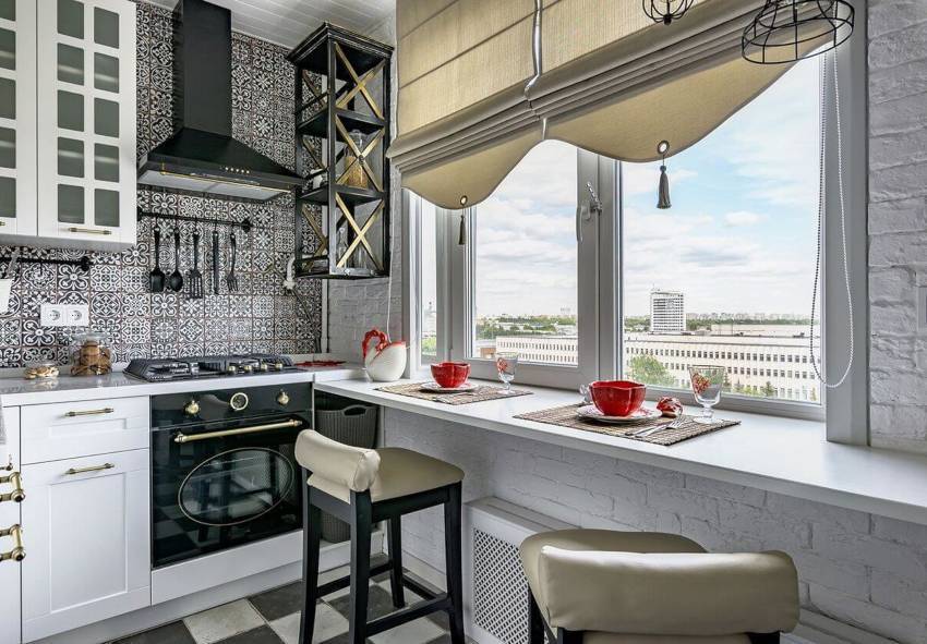 Подоконник-столешница является удачным решением для максимального задействования квадратных метров на маленькой кухне
