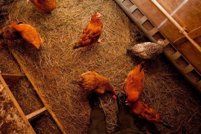 - приучите кур рыхлить подстилку. Для этого периодически сыпьте на нее зерно (чуть-чуть);
