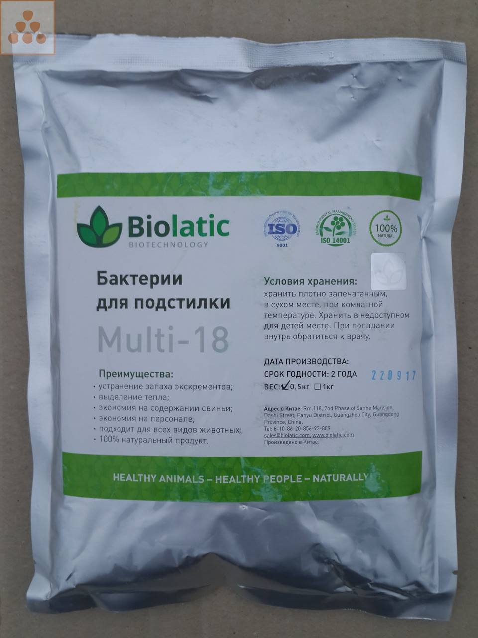 - Биолатик (Biolatic). Международный бренд со штаб-квартирой в Гонконге. Представительство компании есть в Москве, а склады с продукцией находятся в Москве и Новосибирске. Хорошо себя зарекомендовали бактерии для подстилки «Multi-18». Выпускаются в упаковках по 0,5 кг и 1 кг. Цена 0,5 кг – 1799 руб. Такой пачки хватит на площадь 9-10 м2. А вот какие нормы кормления кур несушек в домашних условиях должны быть и как их определить, указано здесь.