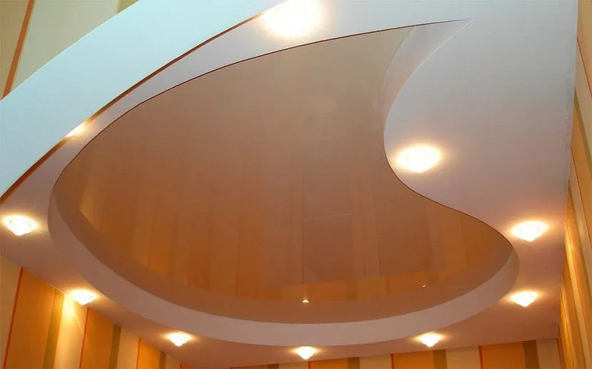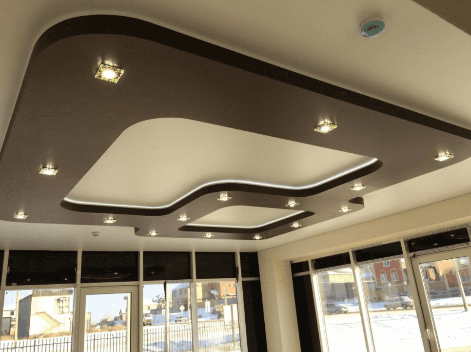 - Возможность создания самых разнообразных вариантов дизайна. На сегодняшний день производители создали и отработали технологии монтажа многоуровневых потолочных конструкций со сложными криволинейными элементами.