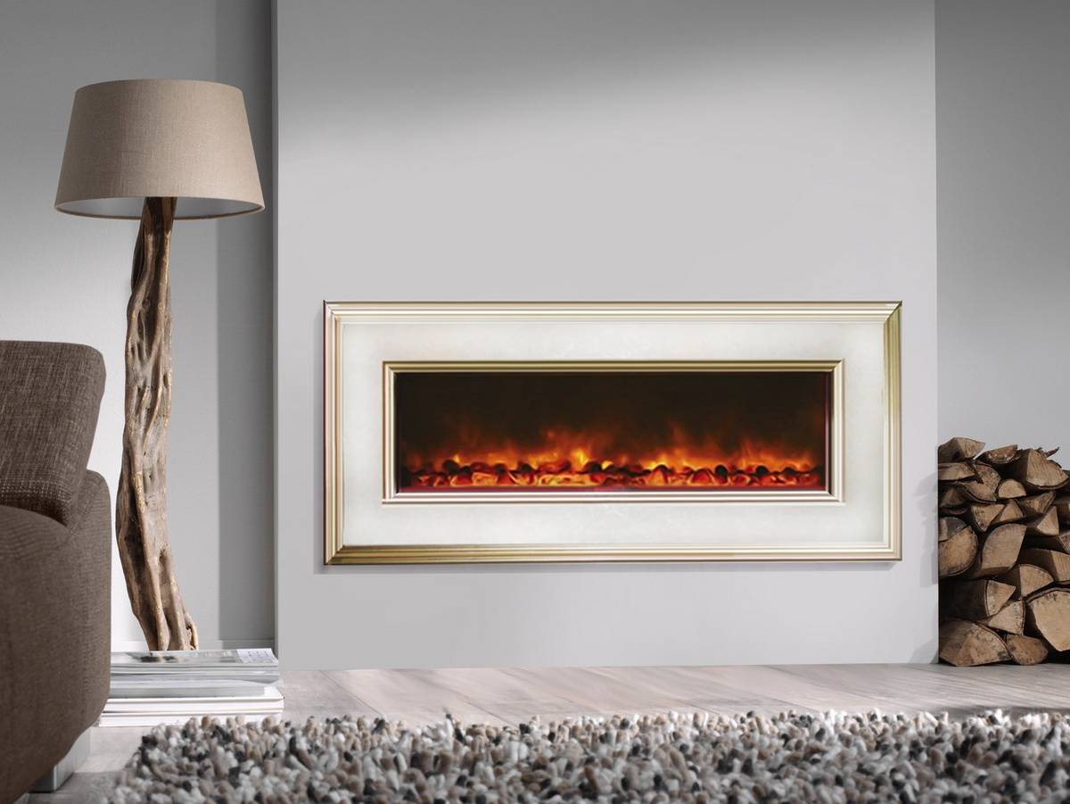 Подвесной настенный камин. Его вес в основном приходится на стену. Он может быть и с дымоходом, и без — это так называемый биокамин.