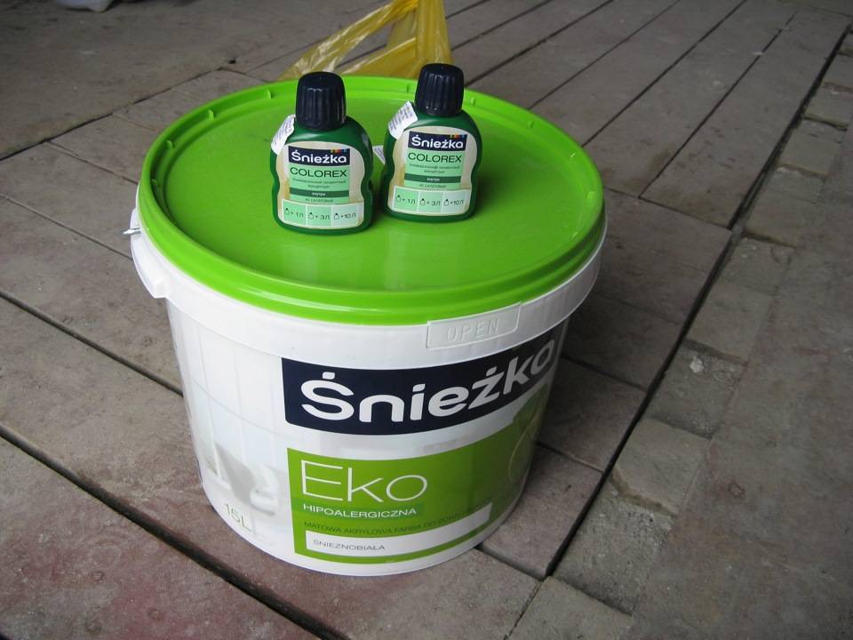 Потолок был сильно чёрный пришлось красить в два слоя и всё равно в некоторых местах проступили черные пятна. Кстати о краске, выбрал краску снежка эко.Далее покрасил стены.Колер от снежки №45 салатовый, в магазине долго выбирал в какой именно оттенок зеленого покрасить остановился именно на нём, купил 2 флакона т.к. показалось, что если разводить один флакон на 10 литров краски, но на практике после покраски потолка осталось примерно 8 литров краски и на это количество я и разбавил один флакон. Как по мне цвет вполне себе нейтральный получился не слишком резкий и довольно светло в гараже.