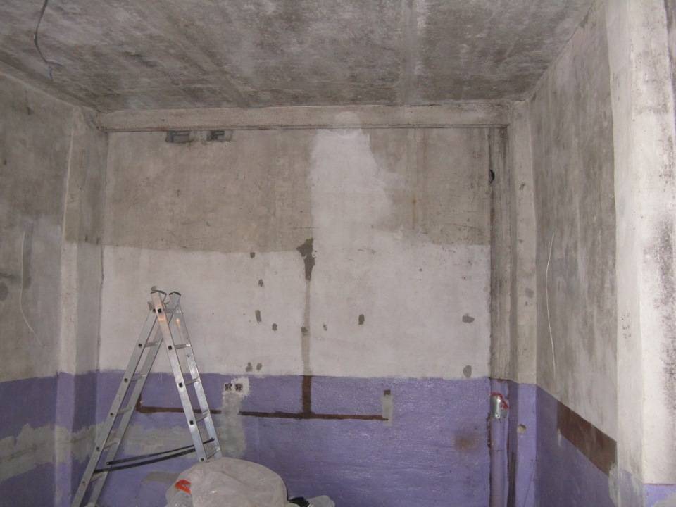 Освободите по возможности стенки, очистите их от пыли, паутины. Если есть трещинки, сколы, то зашпаклюйте их. Пусть все просохнет.