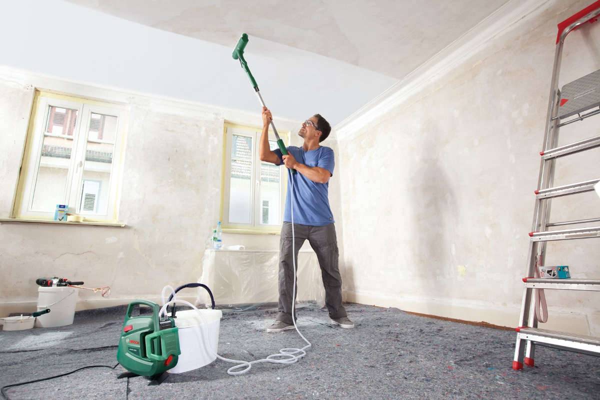 При покраске потолка лучше дополнительно приобрести ручку-удлинитель на валик