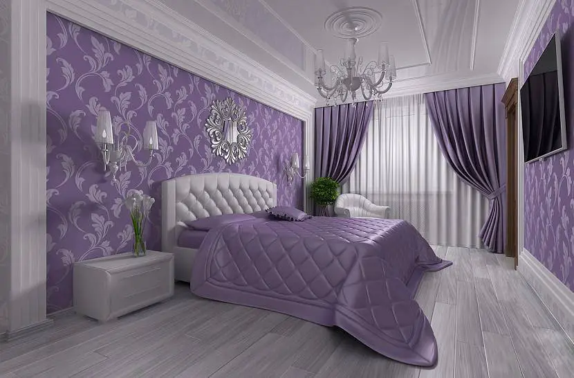Спальня в сиреневом цвете будет выглядеть нежно и романтично.