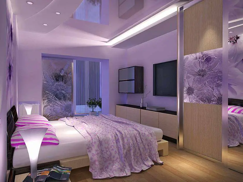 Фиолетовый цвет прибавит помещению интимности и подчеркнет загадочность женщины.